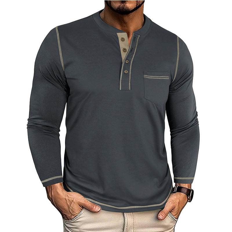 Round neck men's autumn and winter tough guy retro base color contrasting old man shirt