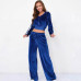 Fashion casual women's solid color zipper cardigan, silver fox fur sweatshirt, lace up pants two-piece set