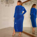 Women's new European and American fashion dress V-neck sexy high waist slit dress long skirt