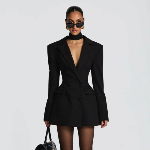 Women's autumn new solid color casual slim fit suit long sleeved floral bud dress