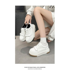 Women's All-White Platform Sneakers - Chunky Sole Casual Shoes for Daily Wear
