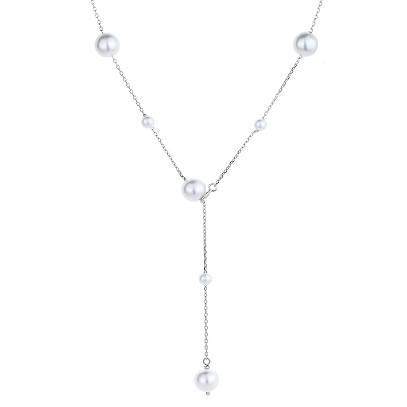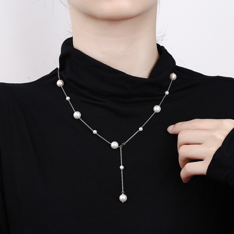 Round bead necklace versatile pure silver niche high-end feeling internet famous fashion pendant sweater chain